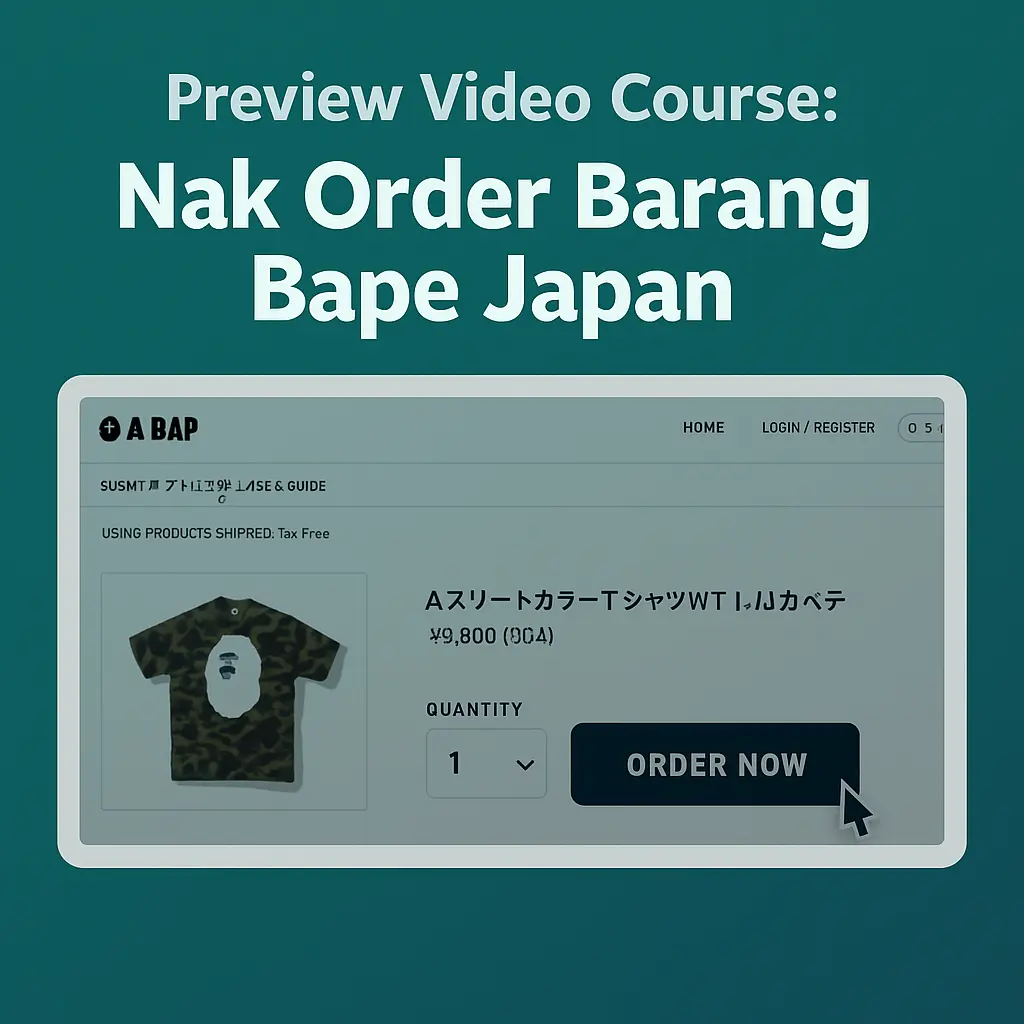 Bayangkan: klik dari telefon je, barang original dari Japan, USA, UK, Australia, Italy & Korea sampai depan pintu. Course ni rakam langkah sebenar—kau tengok → ikut → barang sampai. Itu je.